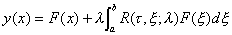 因此,当把方程(1)中F(x)换为K(x,y)时,上式表明存在预解核R(看作两个变量x,y与参数l 的函数)是方程(1)的唯一解。