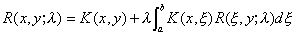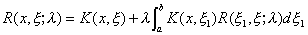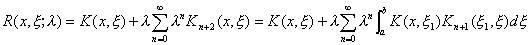 式中不依赖于自由项F(t )的函数R(x,x ;l )称为核的(或Fr方程的)预解核,级数(5)称为诺伊曼级数。