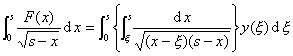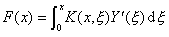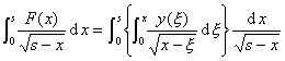 的沃尔泰拉积分方程称为阿贝耳积分方程。对给定函数F(x)适当加以限制下,积分方程(1)可用间接方法求解。(1)式除以