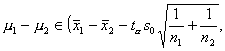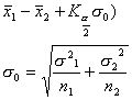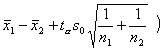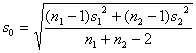 (自由度为n1 + n2-2