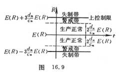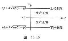 [计件评估] 被评估的产品质量是次品率的大小,其方法与计量评估类似。如果工厂里规定产品的次品率为p,在某时间间隔内,抽取容量为n(>50)的样本,作次品个数m的评估图(图16.10)。