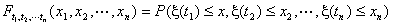 [随机过程的有穷维分布函数族] 设{x (t),tÎT}是随机过程,对任意的正整数n及任意的t1, t2, L,tnÎT,随机变量x (t1) ,x (t2) ,L,x (tn)的联合分布函数为