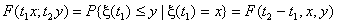 即条件分布F(t1,x;t2,y)只依赖于t2-t1,x,y,则称{x (t),tÎT}是一个时齐(对时间齐次地)的马尔科夫过程。
