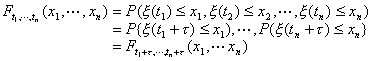 [平稳过程] 若对于n=1,2,L,任意tmÎT(m=1,2,L,n)及任意的τ(tm+τÎT,m=1,2,L,n),等式