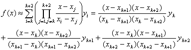 [一元三点插值公式已知单变量函数y=f(x)n个节点上的值,对于插值区间内任一点x,可按下面公式近似计算函数值