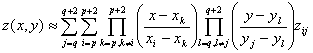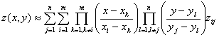 [二元插值公式已知双变量函数的第一个自变量的节点为,第二个自变量的节点为,其对应节点上的函数值为。那末对于不是节点的变元值,可按下面公式近似计算函数值