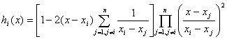 [带导数的埃尔米特插值公式已知函数y=f(x)及其导数n个节点上的值为,那末对于插值区间内任一点x,可按下式计算函数值