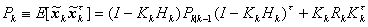 的协方差矩阵,括号中的I表示单位矩阵,最后一个方程称为协方差更新方程。
