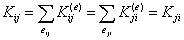 就是通常所谓单元的刚度矩阵;虽然包括i、j两个节点的单元个数有各种可能,但依定义(4)可知