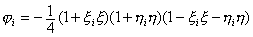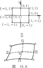 [八、九节点四边形] 八节点包括四边形的四个顶点与四个边的中点,九节点应补加单元的形心。先考虑局部坐标