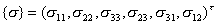 因此应力张量是对称的,其分量只有六个是独立的.在有限元解法中,一般是把这六个分量按如下次序排成列矢量,并记作
