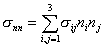 这表明,一个点的应力状态完全由该点的六个应力分量{s}所决定.例如,作用于上述斜面的正应力为