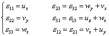 关系式(29)称为几何方程,其矩阵形式为