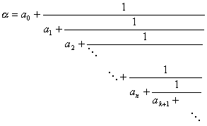 [简单连分数] 设a 为实数(有理数或无理数),则可表成简单连分数