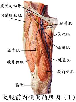 (2)内侧群:为5块内收肌,即长收肌、短收肌、大收肌、耻骨肌、股薄肌。均可使髋关节内收。