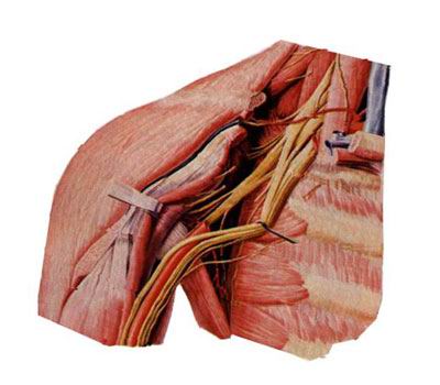 由第5~8颈神经前支、第1胸神经部分前支组成。穿斜角肌间隙,经锁骨后方入腋窝。分为外侧束、内侧束和后束。主要分支有: