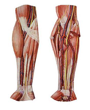 沿腘窝上外侧缘向外,绕腓骨胫,分为腓浅、腓深神经。腓浅神经肌支支配小腿外侧群肌,腓深神经肌支支配小腿前群肌。腓总神经损伤后表现为足下垂伴内翻(即“马蹄内翻”)。