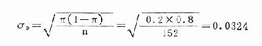 例20.6根据以往经验,一般溃疡病患者中有20%发生胃出血症状。某医生观察65岁以上溃疡病人152例,其中48例发生胃出血症状,问老年患者出血情况与一般患者有无不同? 按惯例大量观察所得的率可当作总体率看待,则本例总体率π为0.2(20%),1-π=0.8,n=152 标准误差 样本率p=48/152×100%=31.6%=0.316 检验步骤: 1.建立检验假设: H0:π=π0=0.2 H1:π≠π0 α=0.05 2.计算u值(按公式20.7)