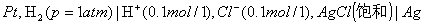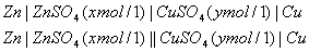 在上述化学电池内,单个电极上的反应称为半电池反应。若两个电极没有用导线连接起来,半电池反应达到平衡状态,没有电子输出;当用导线将两个电极连通构成通路时,有电流通过,构成原电池。为了简化起见,常符号来表示化学电池。图1.1所示的化学电池可用符号表示如下: