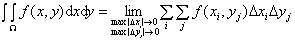 连续函数f(x,y)在有限可求积的平面区域Ω内的二重积分