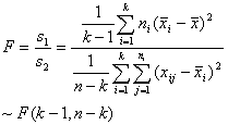 ;如果不同因素Ai所起的作用显著不同,组间方差与组内方差之比就较大,就不能认为