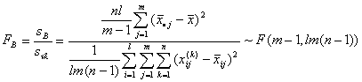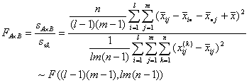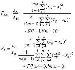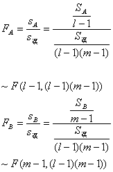 式中FAB和FB分别表示因素A和因素B的影响的显著性,而且