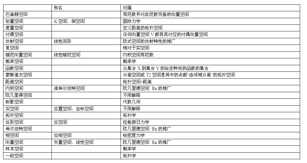 数学上,空间是指一种具有特殊性质及一些额外结构的集合,但不存在单称为“空间”的数学对象。