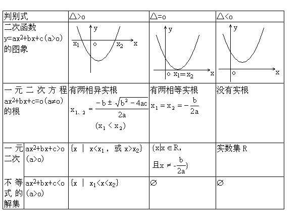 设△=-4ac,且a>o. 二次项系数是负数(即a<0)的不等式,可以先化成二次项系数是正数的不等式,再求它的解集.