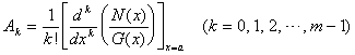 用上述1o,2o的方法确定出A0, A1, L , Am-1和F1(y),再将y=x-a代回.也可按下式来确定系数A0, A1, L , Am-1: