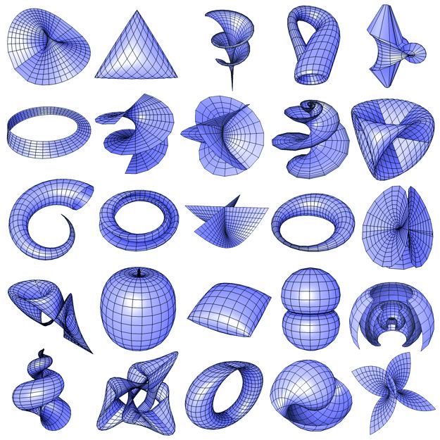 Parametric surface of 200 parametric equations to change surface by refresh of webpage.