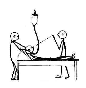 图2-37 冷热试验原理 方法: (1)微量冰水法:方法简便易行。受检者仰卧,头倾向一侧,受试耳向上。向外耳道内注水0.2ml,20秒后将冰水倾出,头恢复正中位,并抬起30°,使外半规管位于垂直位,观察眼震,出现反应后,休息3~5分钟后以同样方法检查对侧。如无眼震则用0.4ml,仍无眼震用0.8ml,仍无眼震可用冰水2ml。正常人70%对0.2ml冰水即有反应,0.4ml则全部正常人都可引出向对侧的水平性眼震。如果需要0.8或2ml才能引出眼震,则示前庭功能减退。2ml以上无反应,则为前庭功能丧失。 (2)交替冷热试验(alternate bithermal caloric test,Hallpike caloric test):此法反应小,无痛苦,较准确,并能指出眼震的优势偏向。仰卧,头抬起30°,吊桶悬挂于患者头部上60cm处,内盛30°C冷水,桶下接皮管和特制橄榄头。橄榄头内径为4mm,其外壳有回水槽,将橄榄头放入外耳道,并将冷水灌注外耳道后40秒即停止(注水量约为250~500ml),同时嘱患者注视正前上方,观察眼震方向和反应时间。反应时间计算为自灌注开始起到眼震停止为止。休息5~10分钟再检查对侧。然后用44°C热水如上法测试两耳(图2-38)。