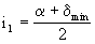 如果保持入射线的方向不变,而将棱镜绕垂直于图面的轴线旋转,则偏向角必然随之而改变。可以证明,如果入射角等于出射角时,即在i1=i1时,则偏向角最小,称为最小偏向角。用δmin表示。