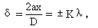 这里K=0相应于在O点处的中央明条纹。K=1K=2,…等等相应的明条纹分别称为第一级、第二级、…明条纹。如果P点为暗点,按干涉条件,有