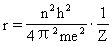 靠核最近的圆形轨道半径,约为0.529×10-8〔厘米〕。在原子物理中常用它作为一种长度单位以a0表示: