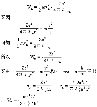 电子在量子数为n的轨道上运动时,其原子系统的总能量Wn等于电