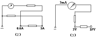 直流伏特表的测量范围有0~3V及0~15V两档.