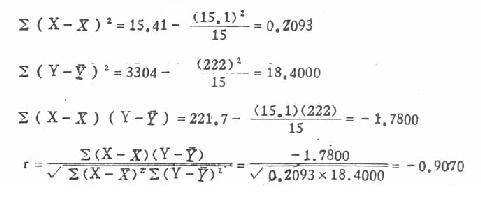 由于来自ρ-0的总体的所有样本相关系数呈对称分布,故r的显著性可用t检验来进行。本例r=-0.9070,进行t检验的步骤为: