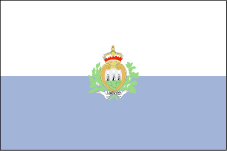 国旗呈长方形,长与宽之比为4:3。由上白下浅蓝两个相等的平行长方形组成,中央绘有国徽图案。白色一种说法是象征白雪,另一种说法认为白色是象征纯洁。浅蓝色象征蓝天。圣马力诺国旗有两种,上述为官方和正式场合用旗,非正式场合则用无国徽国旗。
