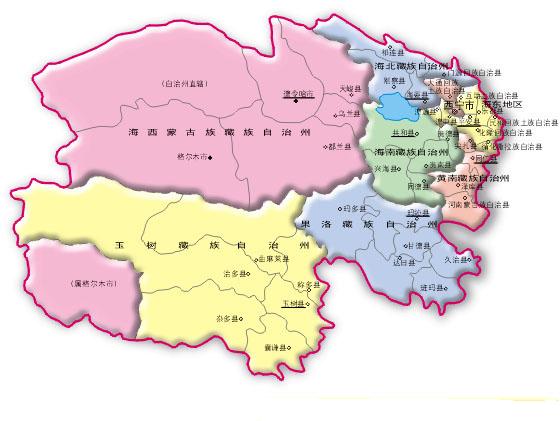 全省面积72万多平方千米,辖1个地区、6个自治州、1个地级市、4个市辖区、2个县级市、30个县、7个自治县,共有115个镇、283个乡(30个民族乡)、26个街道办事处,省会是西宁市。