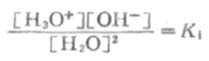 或[H2O+][OH-]=K1[H2O]2 由于水的离解度极小,[HO]数值可以看作是一个常数,令K1[H2O]2等于另一新常数Kw,则 [H3O+][OH-]=Kw Kw称为水的离子积常数,简称水的离子积。上式表示在一定温度时,水中氢离子浓度与氢氧离子浓度的乘积为一常数(表3-1)。25℃时,由实验测出在纯水中[H3O+]和[OH-]各为1.0×10-‑7mol·L-1。通常将水合离子H3O+简写为H+,这样,在常温时: 表3-1 不同湿度时水的离子积