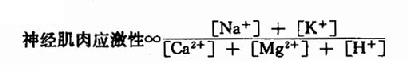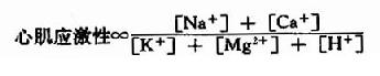 对于神经肌肉应激性,Mg2+与Ca2+是协同的,但对于心肌则Ca2+与Mg2+的作用又是拮抗的如下式: