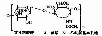 一、化学结构蛋白多糖中的多糖链为杂多糖,因其组成成分中均含氨基已糖,所以称为氨基多糖或糖胺聚糖(glycosaminoglycans)。人体组缔组织中常见的氨基多糖包括透明质酸(hyaluronicacid)、硫酸软骨素(chondroitin sulfate)、硫酸角质素(keratan sulfate)和肝素(heparin)等。 表13-2 人体中常见的糖胺多糖