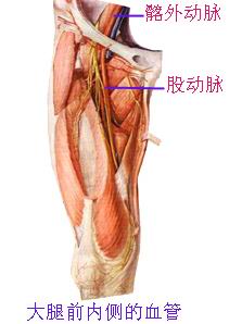 (1)股动脉:由髂外动脉延续,行于股三角内,下降至腘窝移行为腘动脉。 (1) femoral artery: a continuation of the external iliac artery, the line in the femoral triangle inside, down to the popliteal artery popliteal shift behavior.