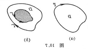4 o If the function is analytic in a multi-connected region , continuous in the upper region, then the integral along the region boundary (Fig. 10.7 ( b )) is equal to zero, i.e.