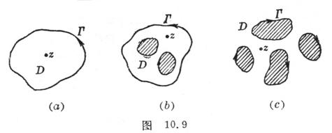The Cauchy integral formula also holds for the multi-connected region enclosed by finite simple closed curves (Fig. 10.9 ( b )) .