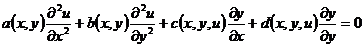 is the quasi-linear equation. In the quasi-linear equation, the part composed of the highest order partial derivative is called the main part of the equation. The main part of the above equation is