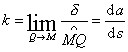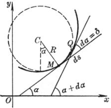 曲线上两点M和Q的切线正向的夹角d与弧长之比,当Q趋于M时的极限,即