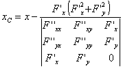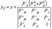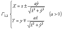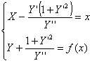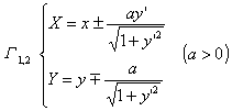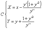 式中正负号上边对应于 如果G 为参数式方程 则有以t为参数的方程 这个方程是以x为参数的参数方程.其他形式表达的曲线G 的渐屈线的方程参见曲率中心的公式 设C的方程为y = f (x),则G Y = Y (x)或 它是微分方程组 的解,式中 方程与说明(G : y = f (x)) |