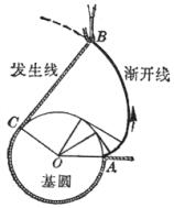 例 在圆盘周围绕上一根不会伸缩的细线,线端栓一支铅笔,拉紧线端A逐渐拉开,铅笔尖在纸上画出来的曲线就是圆的渐开线.这个圆称为渐开线的基圆.细线称为渐开线的发生线(图7.16(a) ).