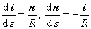 式中t和n分别为曲线的切线和法线的单位矢量,s为弧长,R为曲率半径.